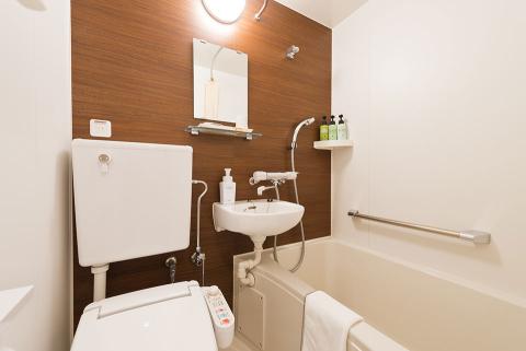 シックな内装のお部屋は、全室に有線LAN&無線LAN(Wi-Fi)を完備し、ポケットコイルベッド・化繊布団(エンドレスファイバー使用)で快適にお過しいただけます。