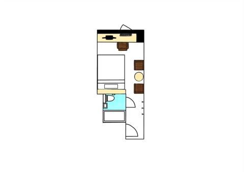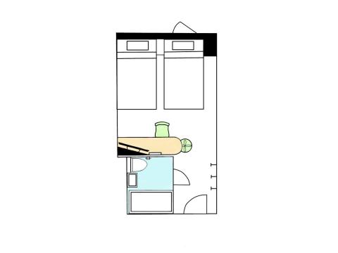 ちょっぴり広めの20.0m²の角部屋です。ポケットコイルベッド・化繊布団(エンドレスファイバー使用)・40インチ液晶テレビ完備で、ゆったりとお寛ぎいただけるお部屋となっております。